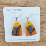 Handcrafted earrings made using blended clay to create custom colours, these earrings are super light in weight and comfortable to wear all day. They have a matte finish and are complemented withsilver tone stainless steel hardware. Length of earrings is approximately 35mm.